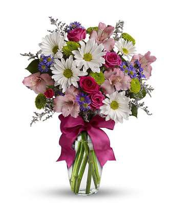 With a mix of everything pretty, the Pretty Please bouquet is great to give to any occasion. A mixture of wonderful colors, from a fairly light pink to bright green, lovely lavender and clean white, all tied up with a bright pink bow. The color and flower combinations makes this bouquet one of our most popular – and for good reason! These flowers will bring a smile to someone’s face in any situation.